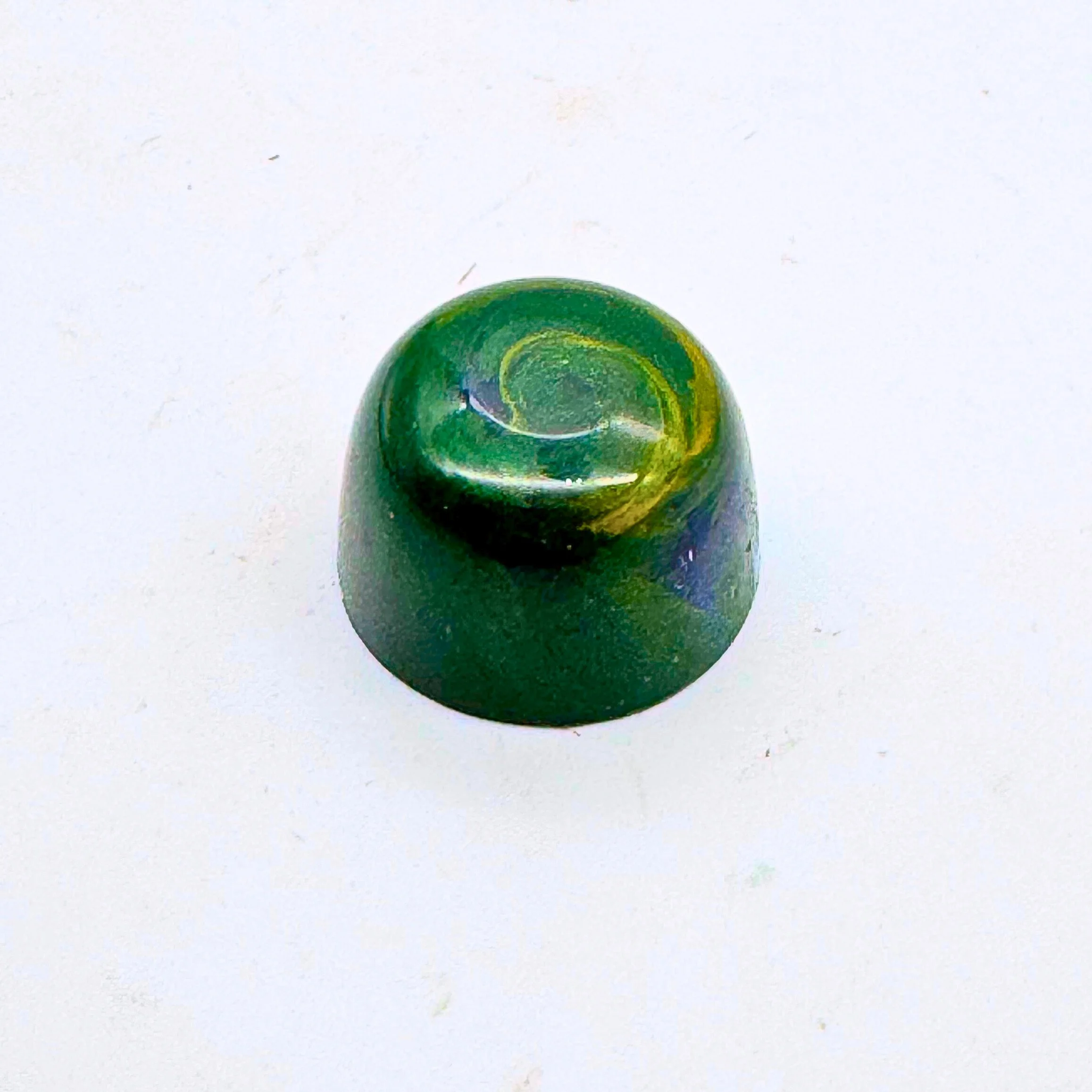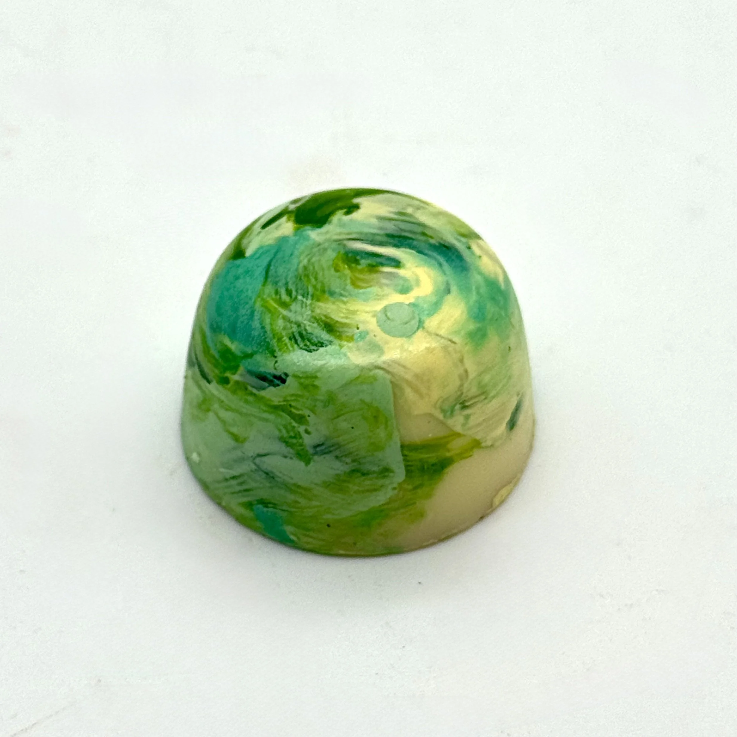 Fresh mint infused white chocolate ganache in a dark chocolate shell.
